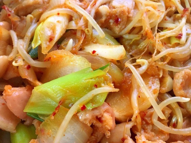 ホルモン焼き コプチャンボックムの韓国レシピ 豚もつと野菜の旨辛炒め カライチ