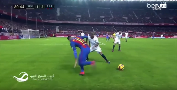 ボディフェイントで相手の重心をズラしたり 、 ダブルタッチ を駆使して相手の反対にボールを持ちだしたり。 それと、ネイマールは 相手よりも半歩早く動き出す印象 がありますね。 ネイマールさんのボディフェイント ネイマールさんのボディフェイント。 ボールを触らずして相手を腰砕け状態にして置き去り。 簡単にやってるように見えるけど、周りを見つつ相手の足下もしっかり見て相手との距離感や相手の体重の掛け方とか良